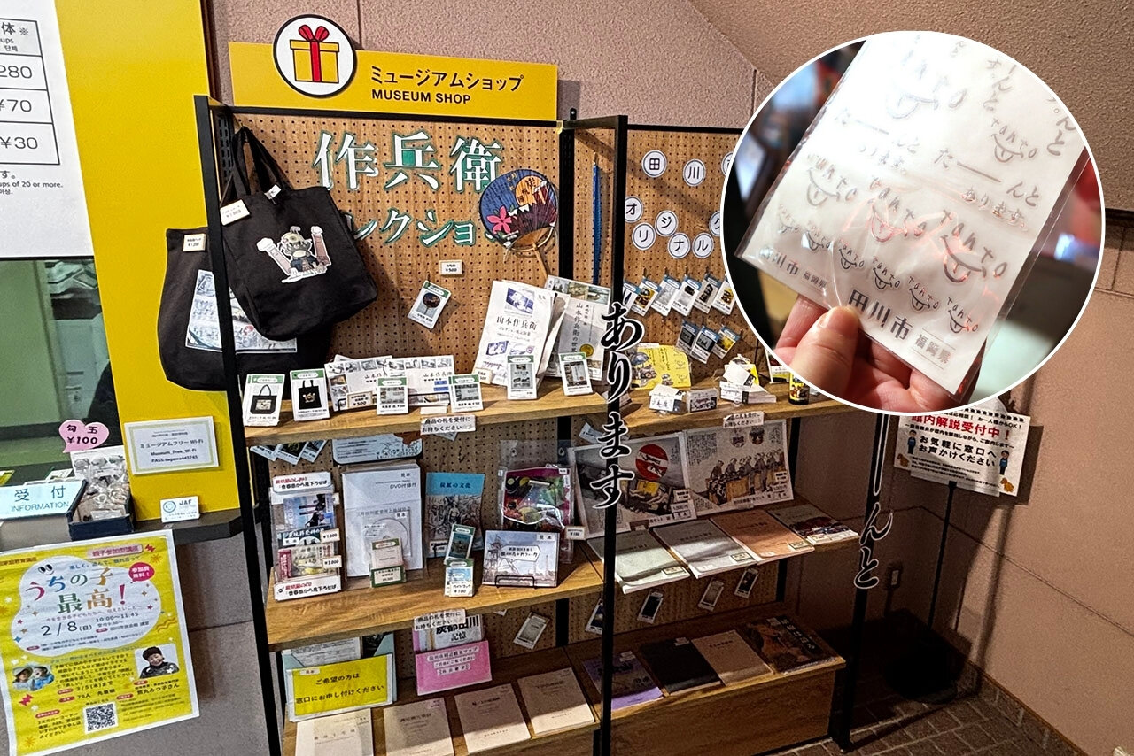 山本作兵衛コレクションの図録といった収蔵品にまつわるアイテムのほか、おしゃれなシールなど田川市オリジナルグッズもそろっています。来館記念にいかがでしょう?