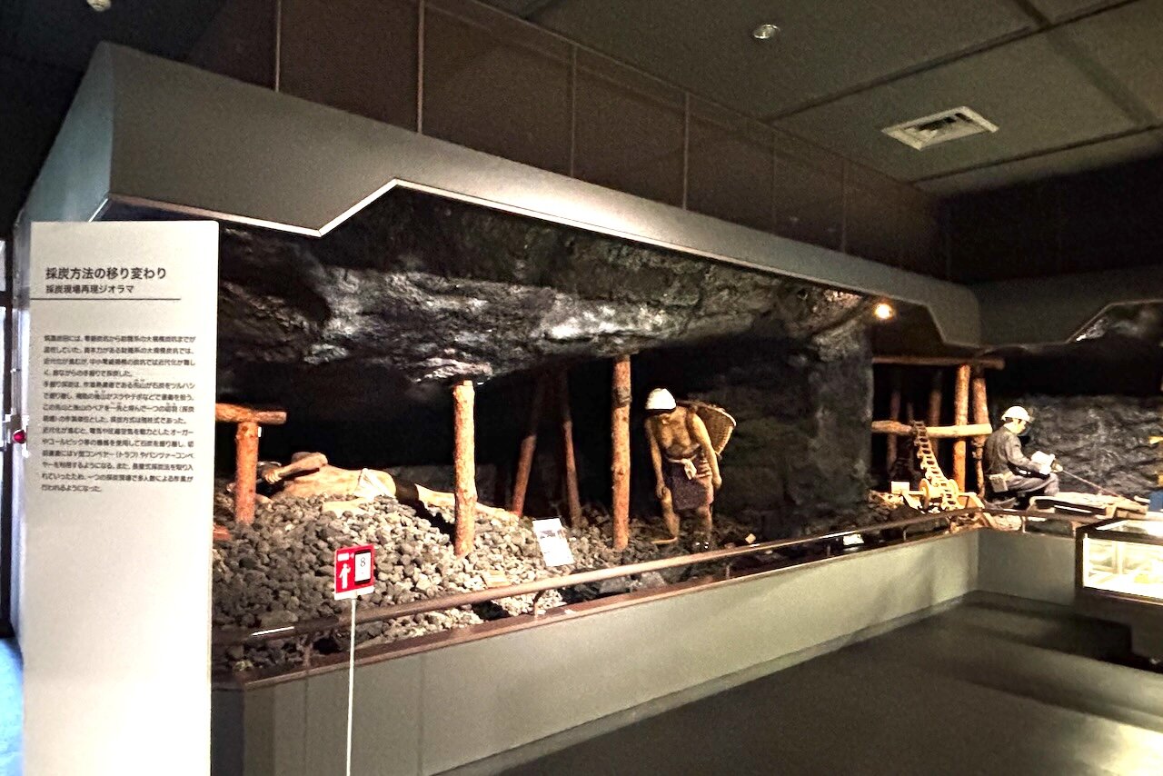 炭坑での作業を再現するジオラマもありました! 石炭が手掘りされていた明治時代から、機械化が進んだ昭和初期までの採炭方法が分かるようになっています。