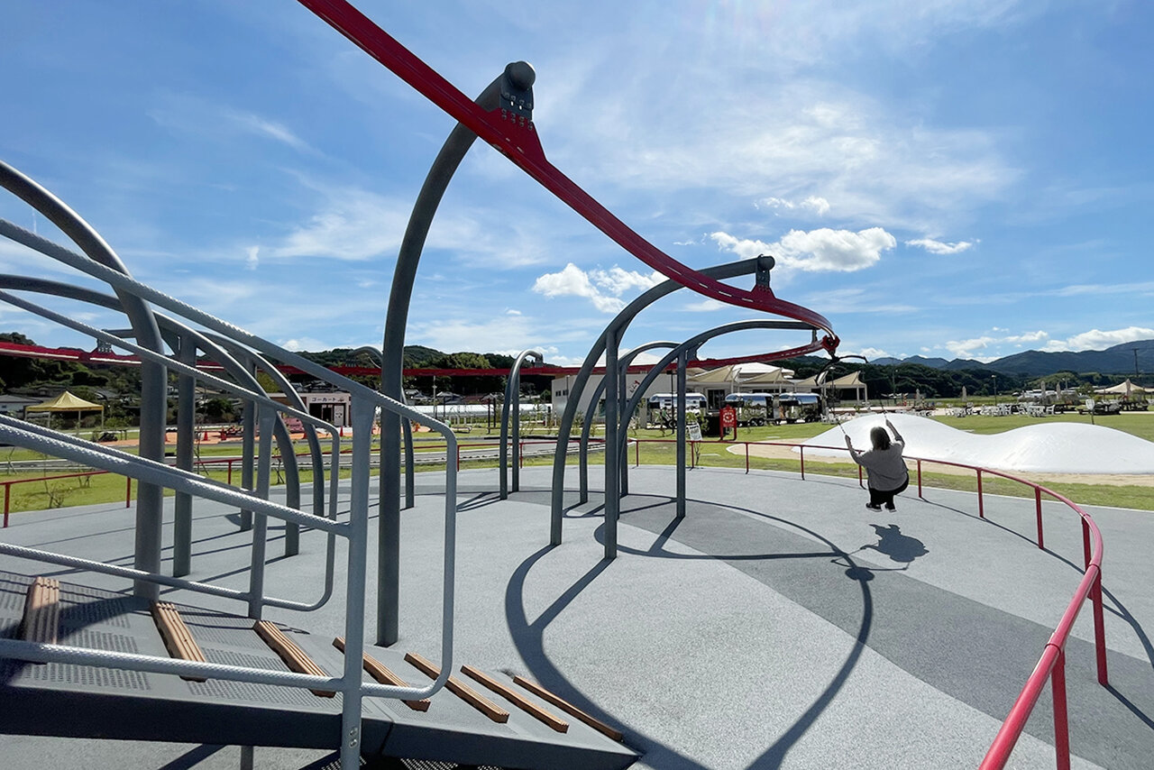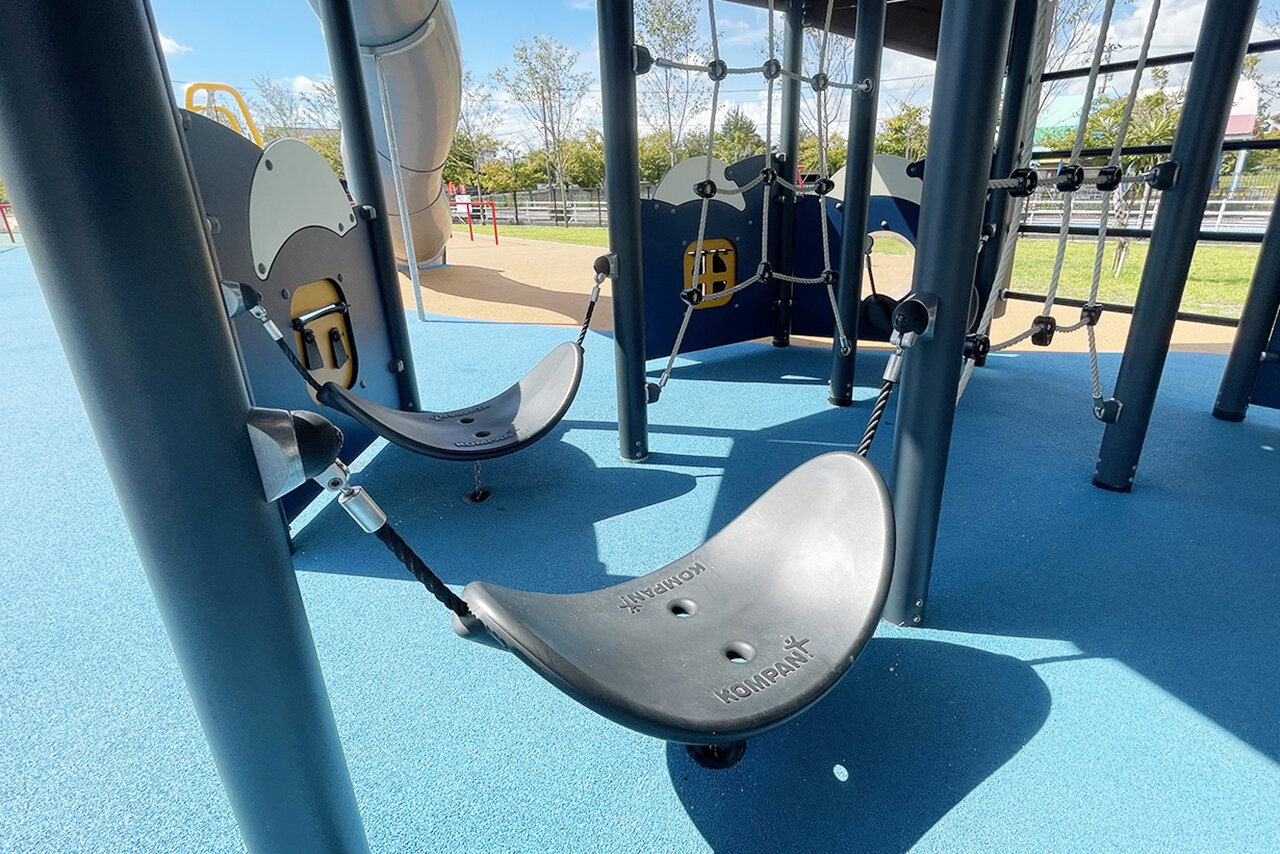 注目は、ブランコに乗って空中を滑走できる「グラビティ・レール」。連休などには行列ができるほどの人気遊具なのだそう。