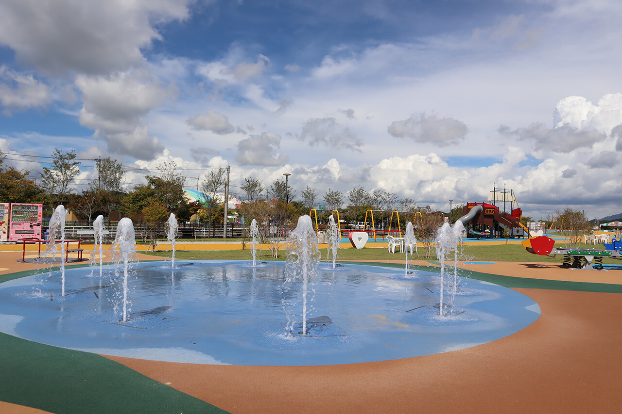 「ちびっこエリア」の一画にある噴水では15分おきに15分間の水遊びが楽しめ、夏のお出かけを涼しく演出してくれます。