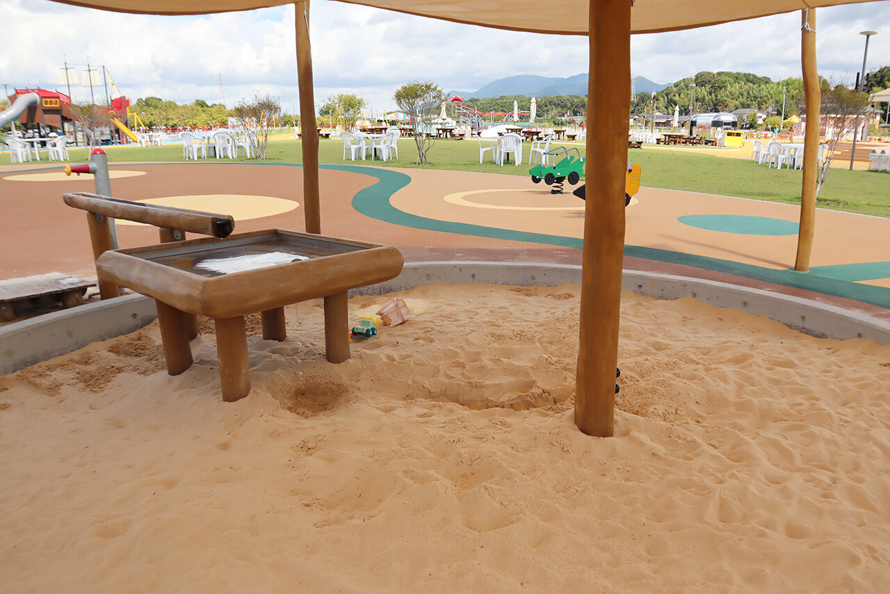 屋根付きの砂場もありました! 砂場の中に水場もあるので、水と砂を混ぜておだんごを作るなど、砂遊びができちゃいます♪