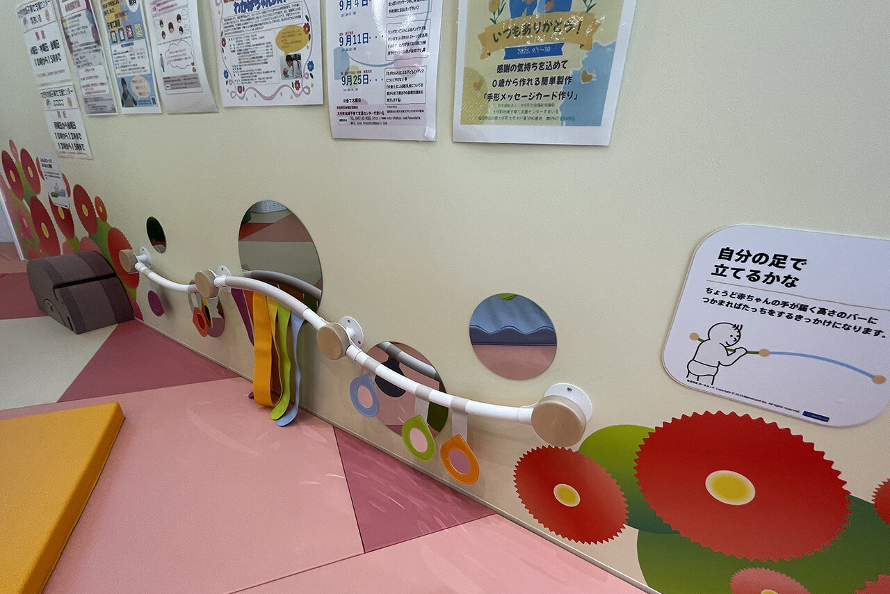 鏡やつかまり立ちができる手すりなどが用意されている「ベビーエリア」もあり、0歳から楽しむことができますよ。