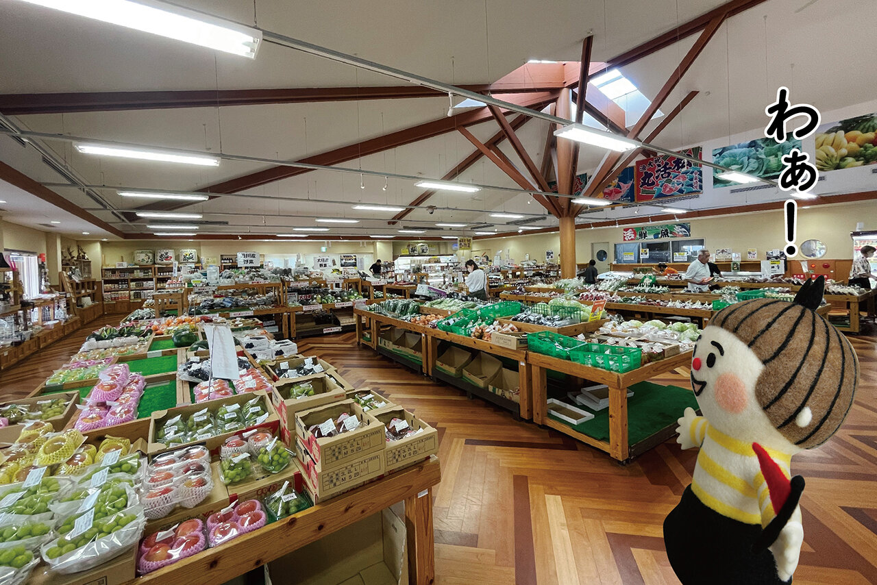 続いて、「ふれあい広場」の道向こうにある「もみじ館」を探検。物産館には、近隣で採れた新鮮野菜や特産品がズラリと並んでいます!
