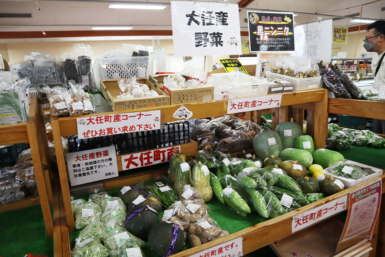「大任産野菜」コーナーには、季節の野菜が勢ぞろい。