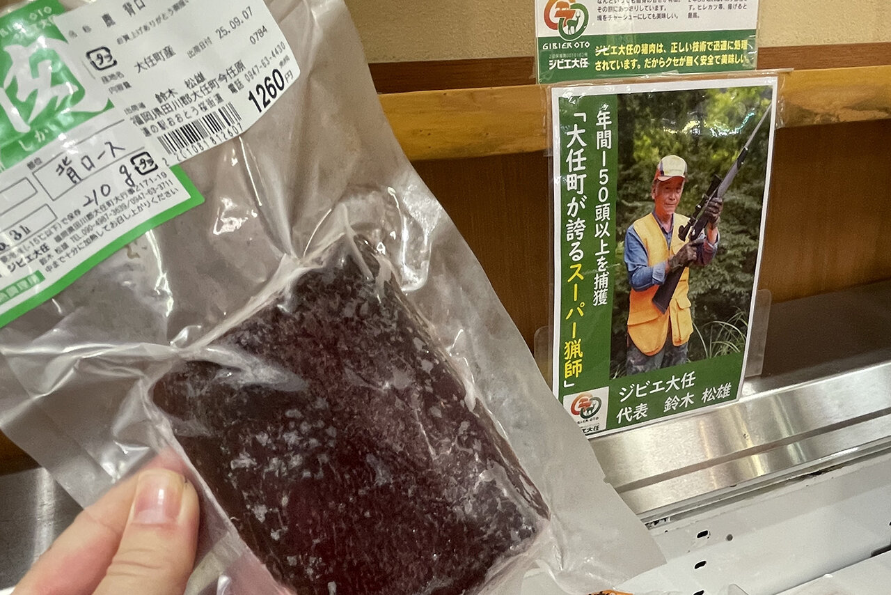 大任町のスーパー猟師が手がける「ジビエ大任」の鹿肉や猪肉も名物のひとつ。ご指名で買い求めるファンも多い人気商品です。