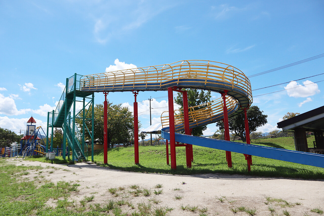 「もみじ館」の脇にもともと設置されていたロングスライダーなどの大型遊具は、「ふれあい広場」新設後も健在です。