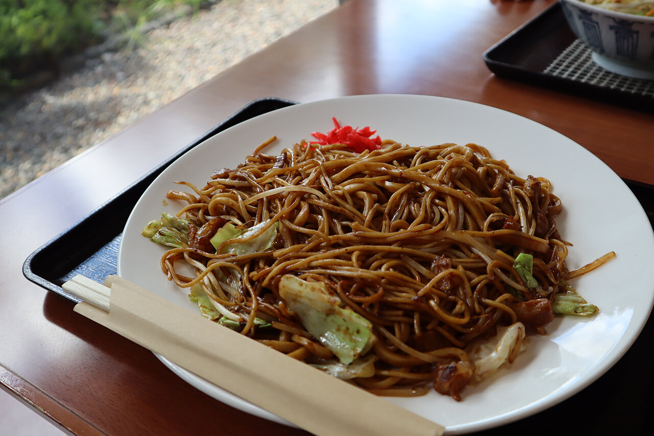 大任町と同じ田川郡出身の著名人・IKKO(いっこー)さんが考案した「IKKO焼き」は、焼きそばと焼きうどんが合体したアイデア料理。2つの味わいが一度に食べられる、ボリュームたっぷりのひと皿です!
