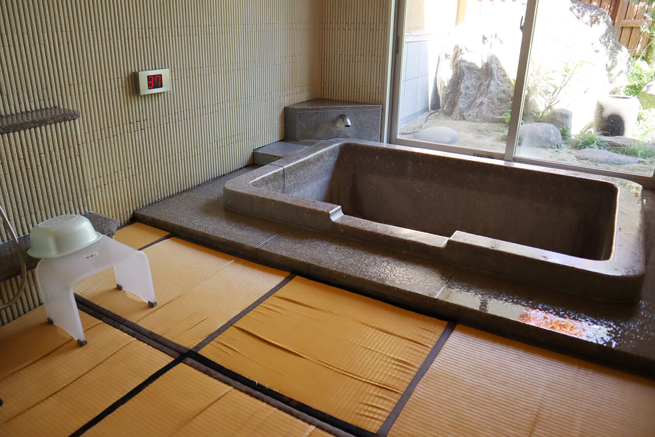 露天風呂を備える大浴場や小学生も利用できる「薬石浴」、家族風呂などで汗を流すことができます。