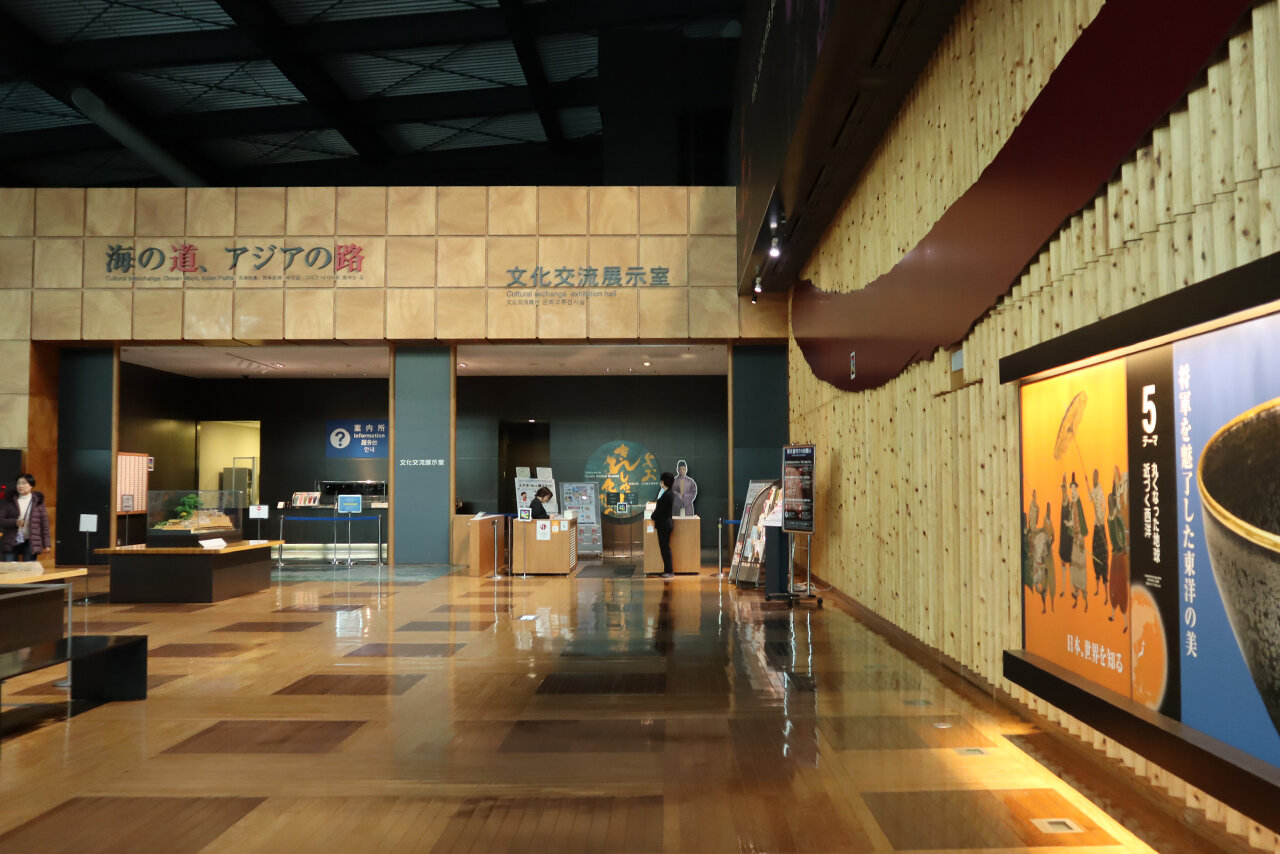 エントランスホールのエスカレーターで4階に上がると、九博の顔「文化交流展示室」があります。日本とアジア・ヨーロッパ諸国との文化交流の歴史について知ることができる、常設の展示室です(※有料、子どもは無料。料金の詳細は記事末尾をご覧ください)