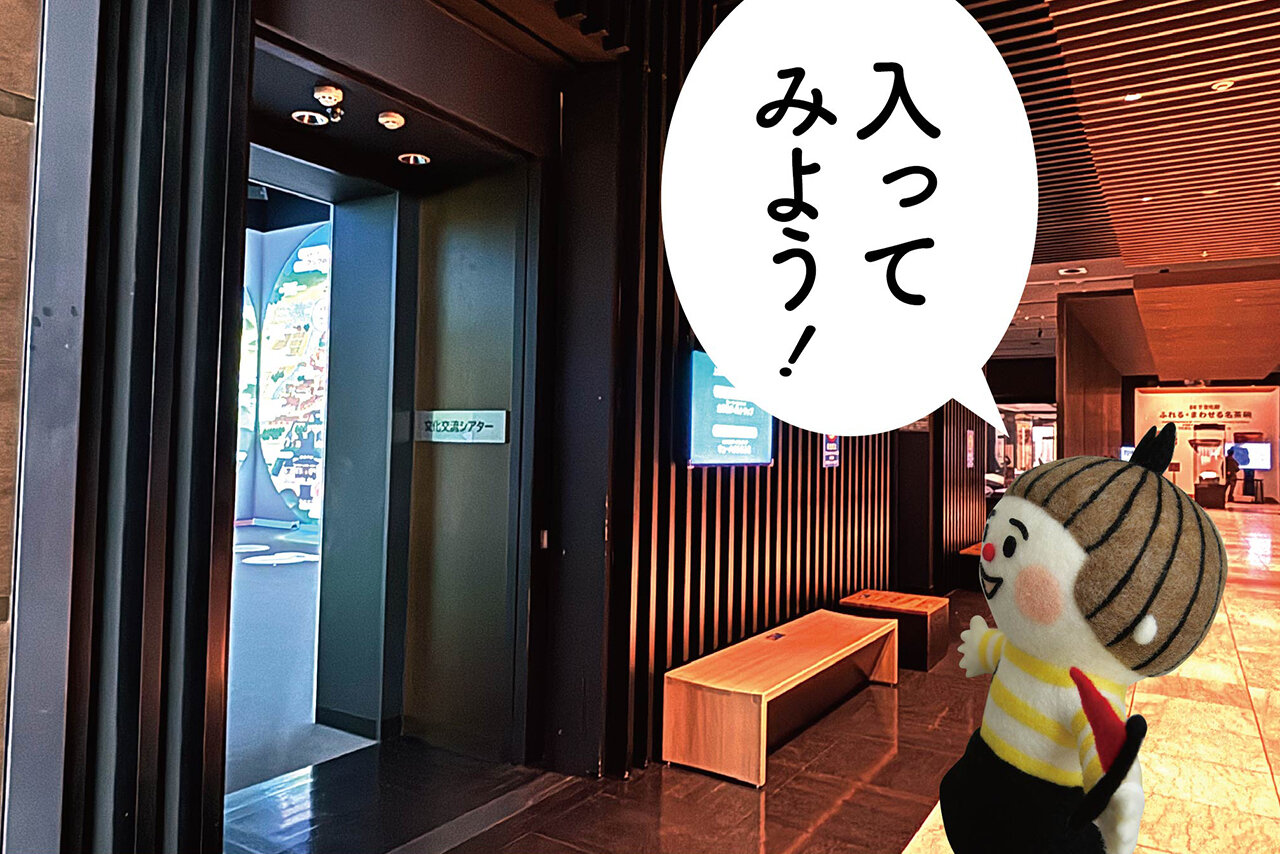 中に入ってすぐ左の、楽しげな音が流れてくる部屋は「きゅーはくみるみる」(文化交流シアター)。20周年を機に登場した没入型の大型シアターで、「太宰府タイムトリップ」と「キューハクふむふむ」の2つのコンテンツが交互に上映されています。