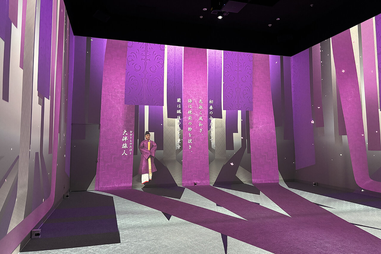 入口では元号「令和」の由来となった万葉集の歌人・大伴旅人(おおとものたびと)さんがお出迎え♪