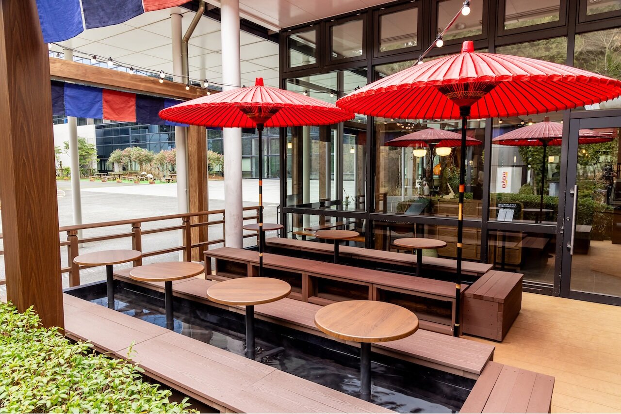 「太宰府 いい乃じ」の隣には、足湯に浸かりながらテイクアウトグルメが味わえる「九博庭園足湯茶屋」もあります。