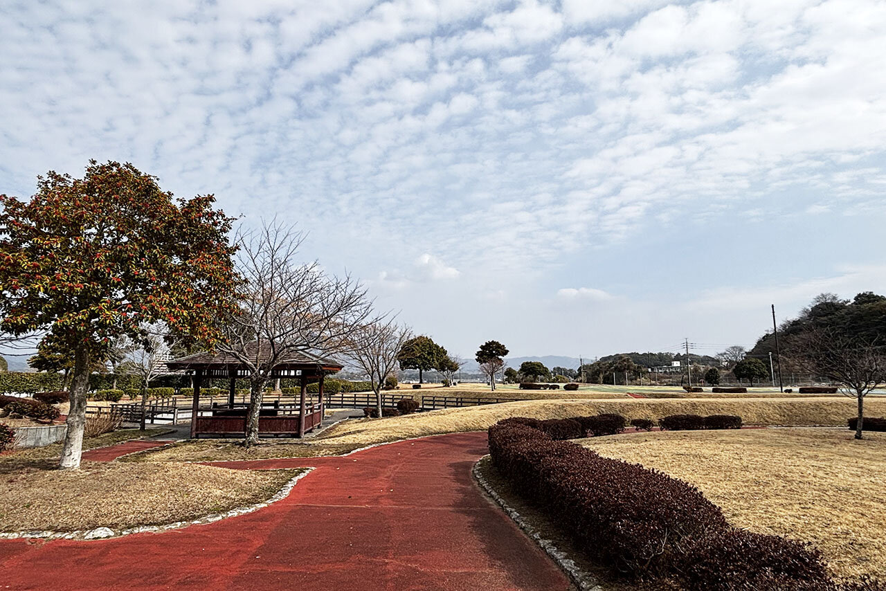 公園の奥には、お弁当を食べたりちょっと休憩するのにぴったりな東屋やベンチもあります。