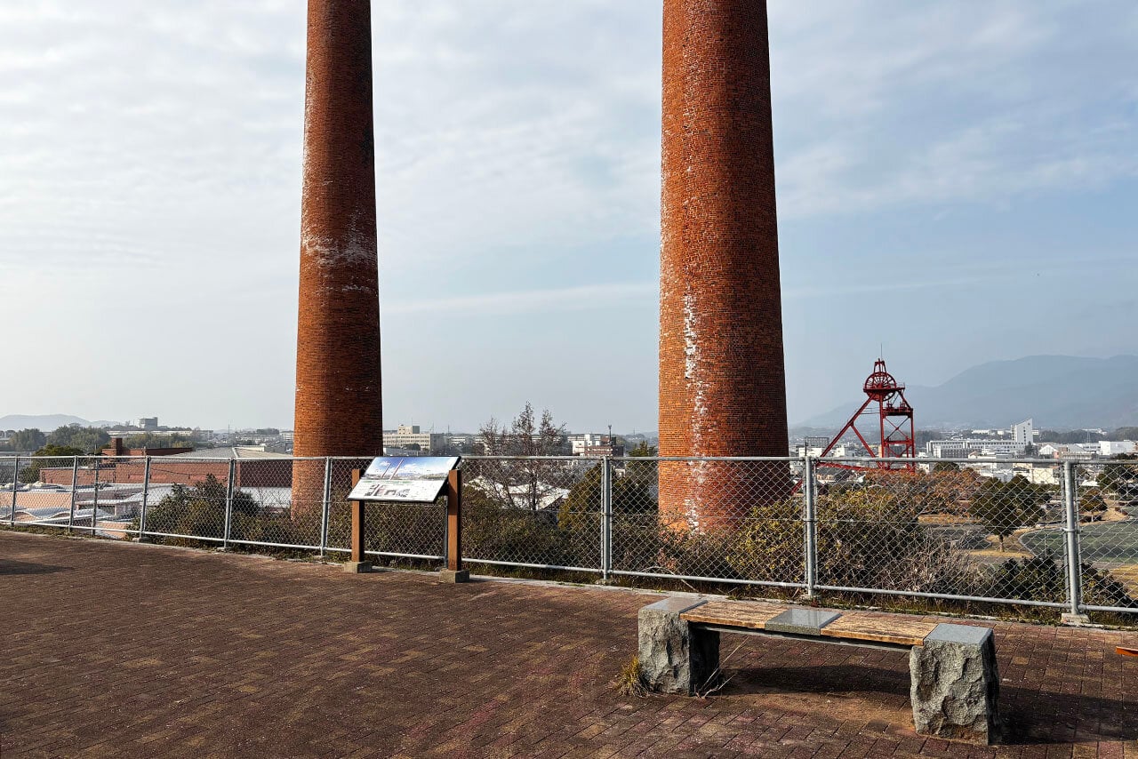 煙突と竪坑櫓とを一望のもとに見渡せるビュースポット、「展望広場」につながっています。