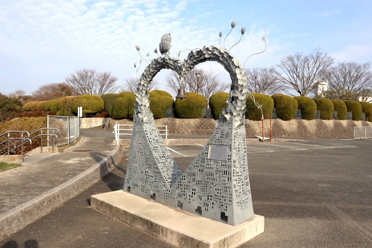 100年以上並んで立っていることから「夫婦(めおと)煙突」とも呼ばれる二本煙突。煙突築造111周年にあたる令和1年(2019年)11月1日には、愛を誓う鐘「百年(とわ)の鐘」オブジェも設置されました。ここで家族スナップを撮影すれば、いい記念になりそうです♪