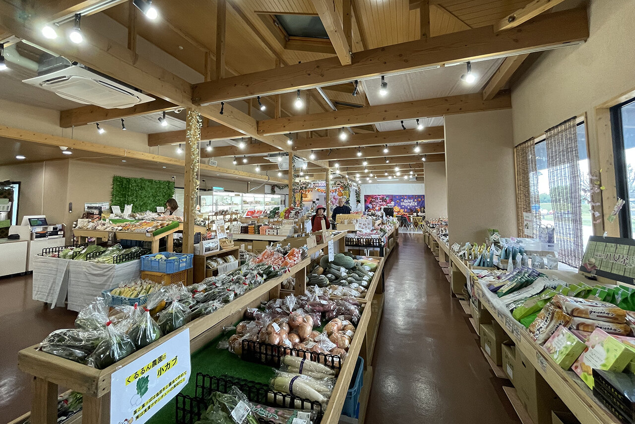 産直館「くるるん夢市場」には、“大木ブランド”を中心とした農産品や食品がズラリ。