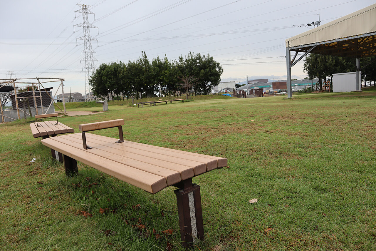 くるるん夢市場前には、体を使って思いっきり遊べる「芝生広場」があります。周辺にはベンチもあり、購入したお弁当やおやつをここで食べるのも良さそう。