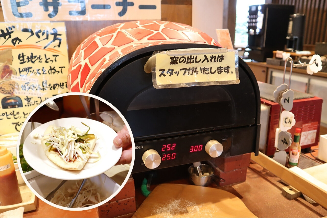 きのこなどを自由にトッピングして専用の窯で焼くことができるピザもありました!