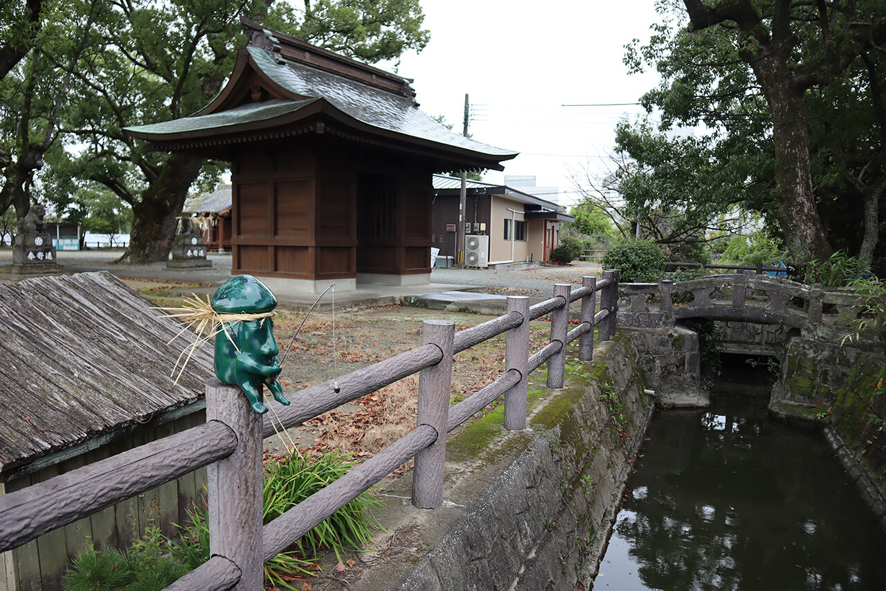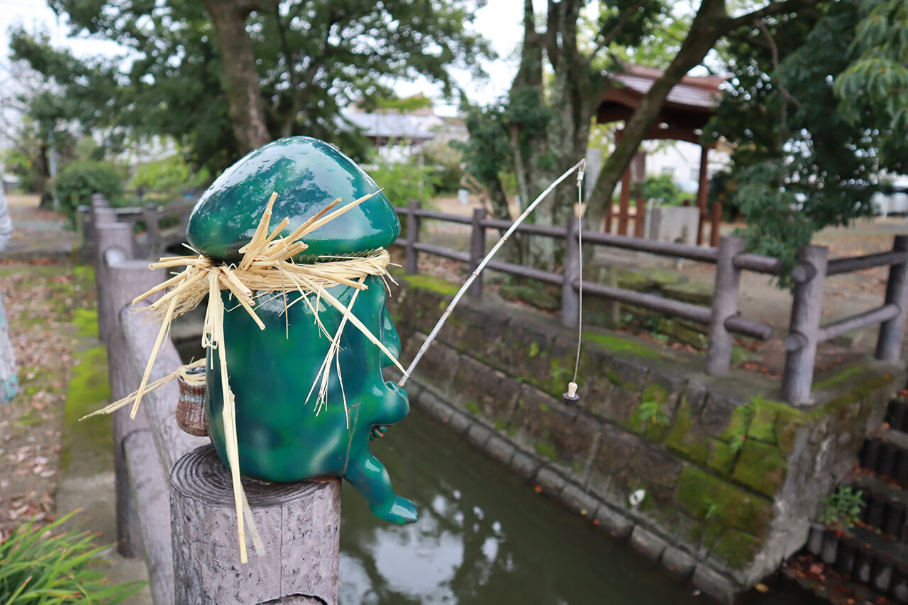 もう一体が、八丁牟田天満神社の境内で釣りをしている子です。