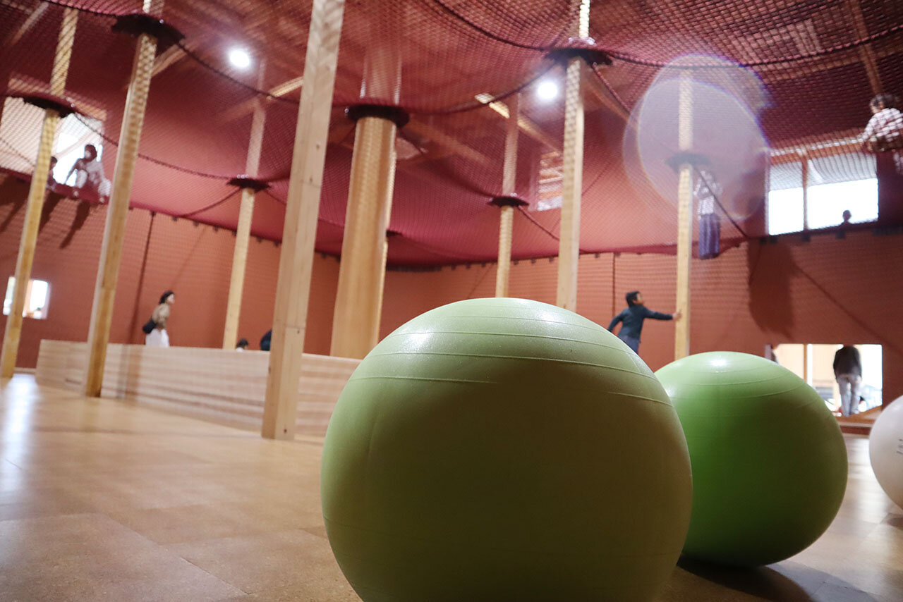 入ってみると、大小のバランスボールを発見! 乗って弾んだり、転がしたりと、ここでも遊び方は自由です。