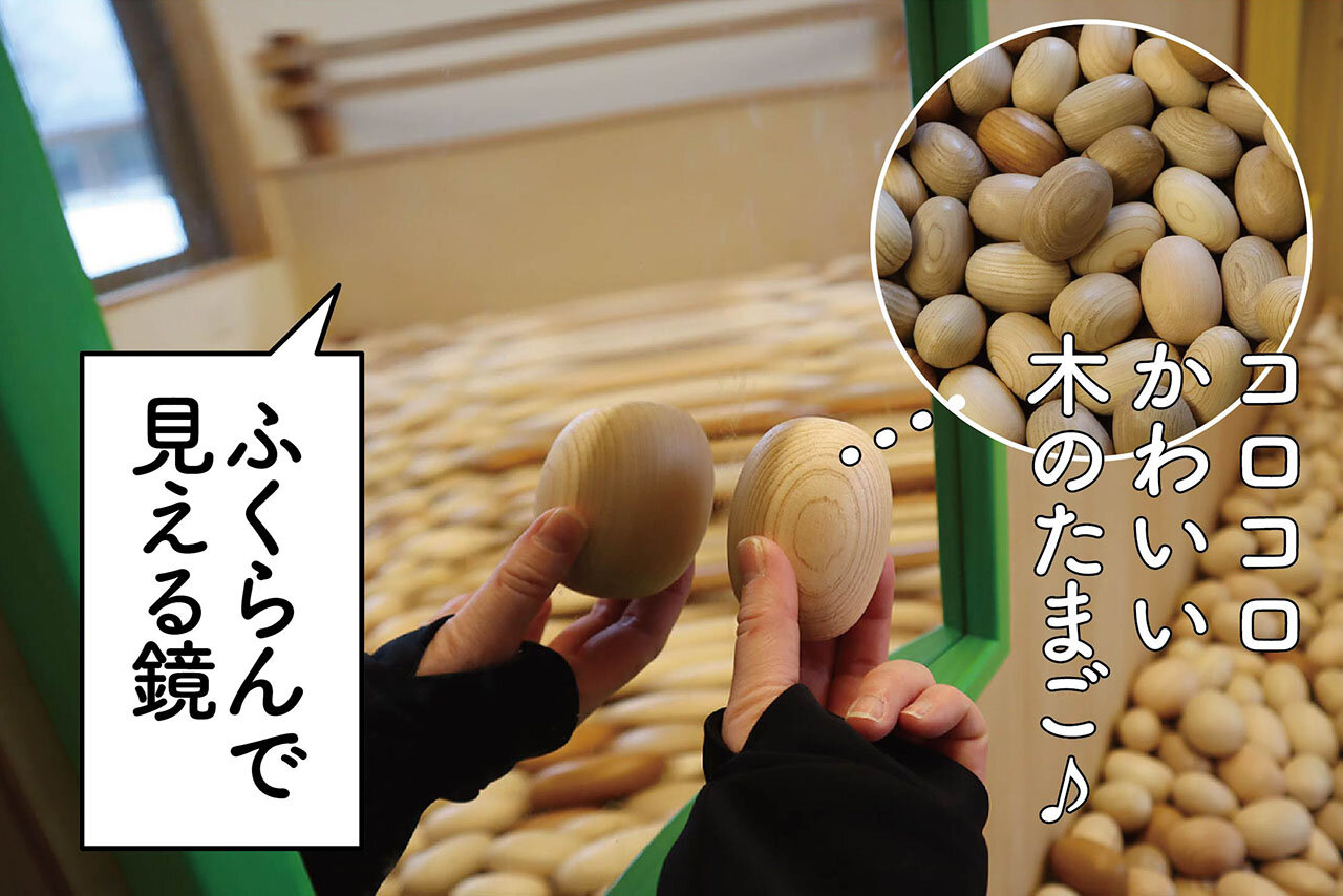 さまざまな樹種で作られた木のボールプールや積み木、不思議な鏡など、赤ちゃんから楽しめる遊具がいっぱい用意されています。