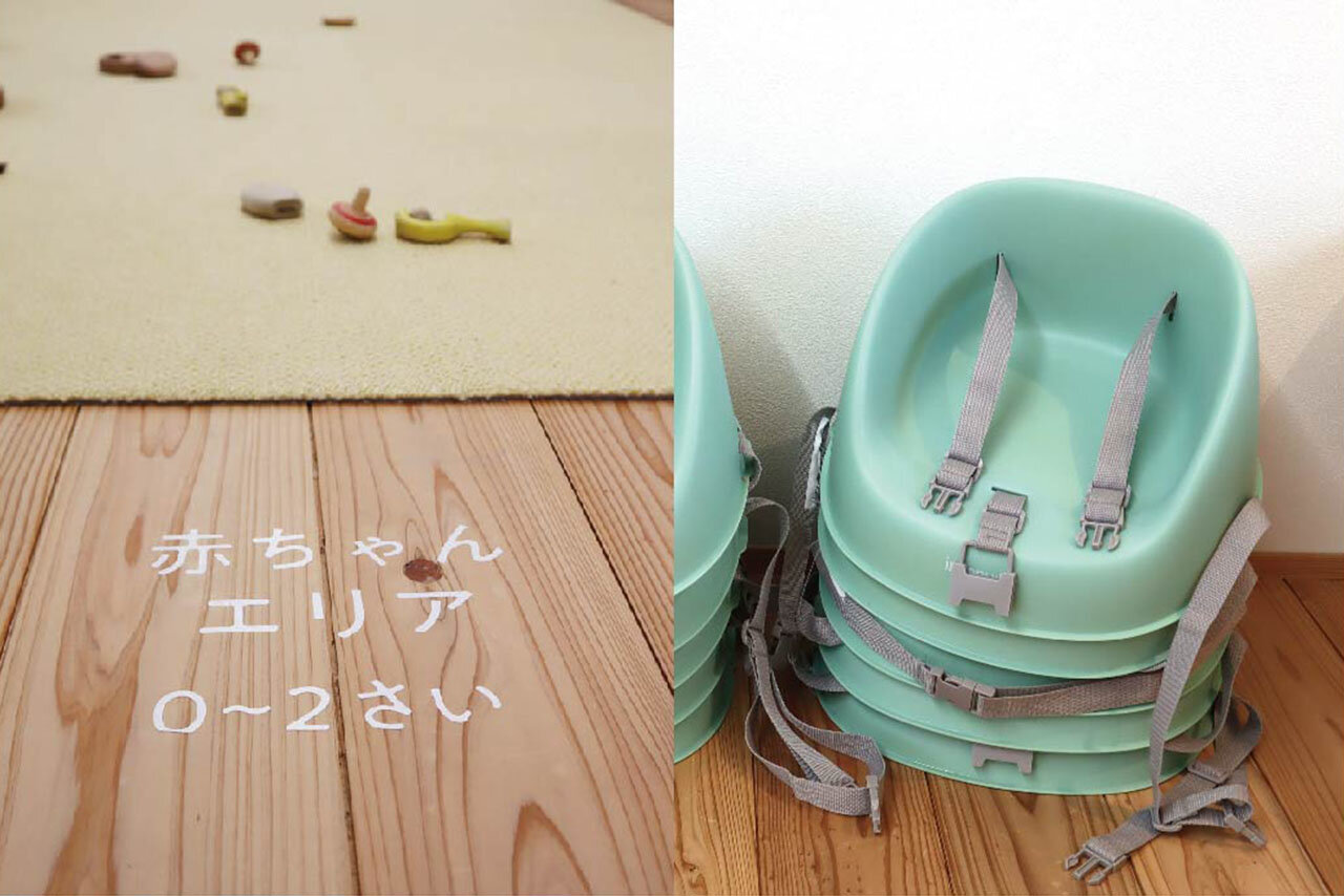 ベルト付きの赤ちゃん椅子も用意されているので、食事中に小上がりから落ちる心配もありません。