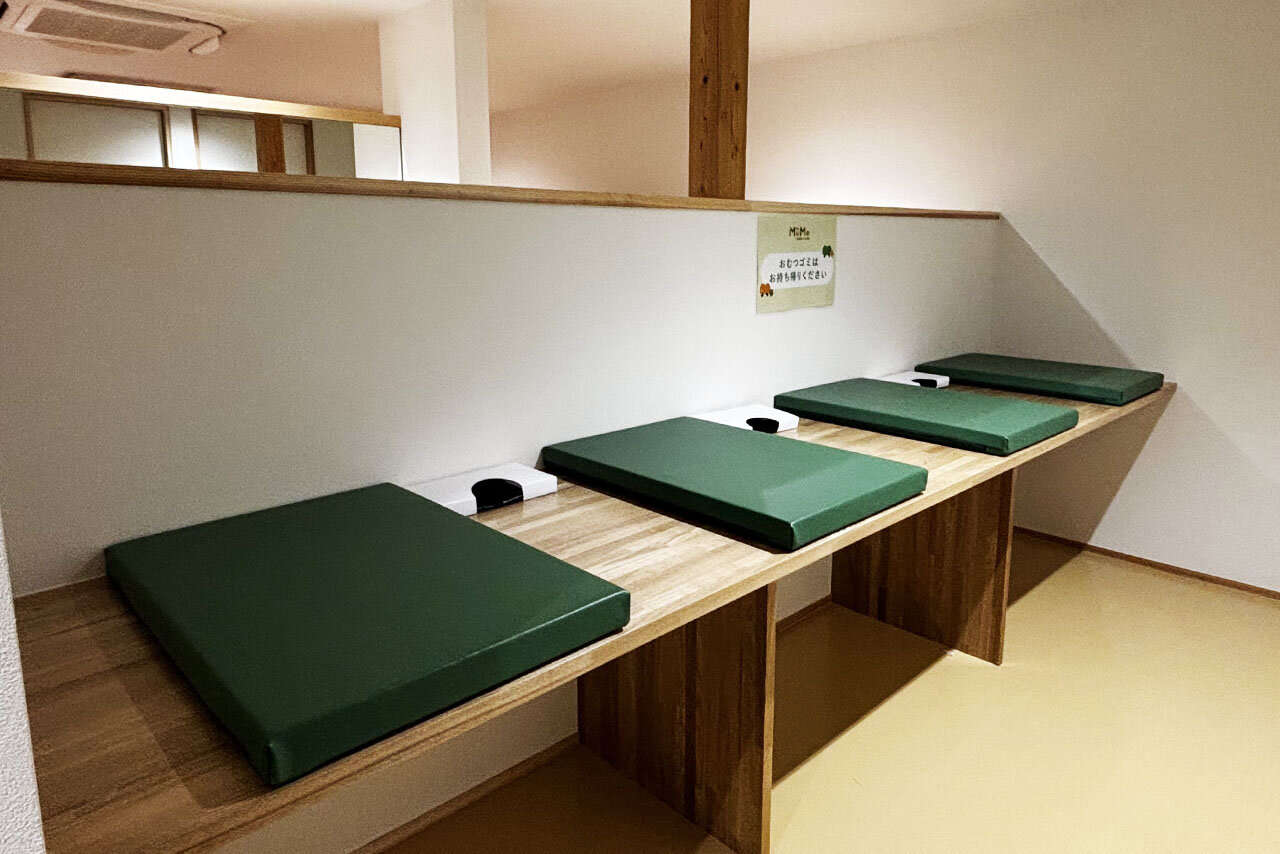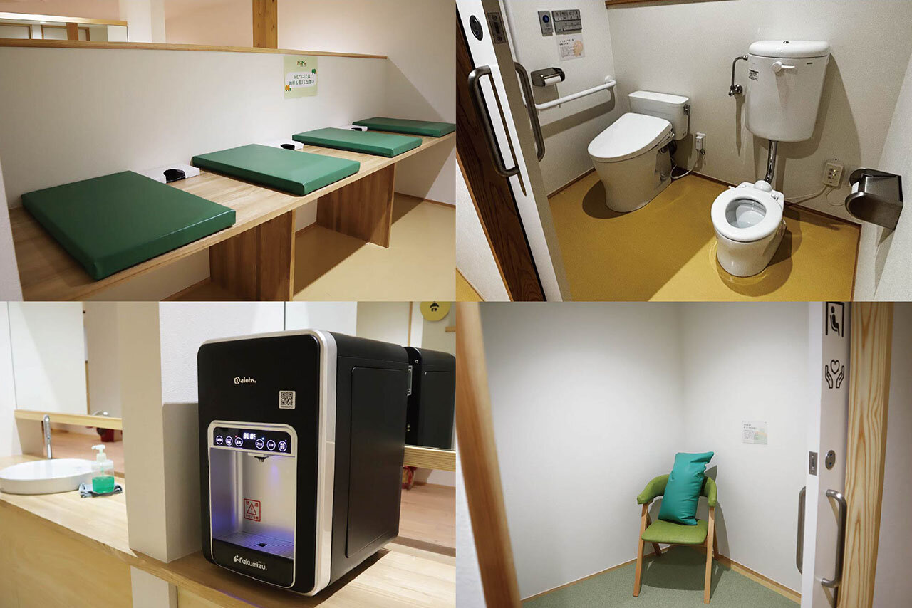 カームダウンスペースを兼ねた授乳室、保護者と子どもが一緒に入れるトイレ、おむつ替えの台などがしっかりと整っているのも、Mu-Moのおすすめポイント。