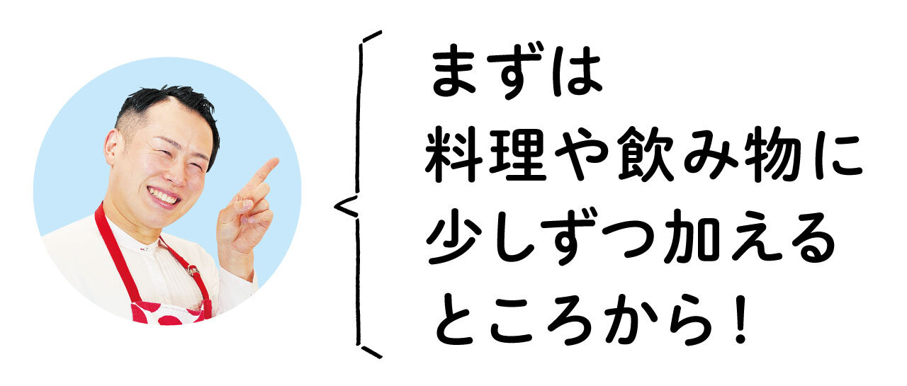 ココア、きな粉、紅茶、抹茶などと混ぜると飲みやすくなります。
