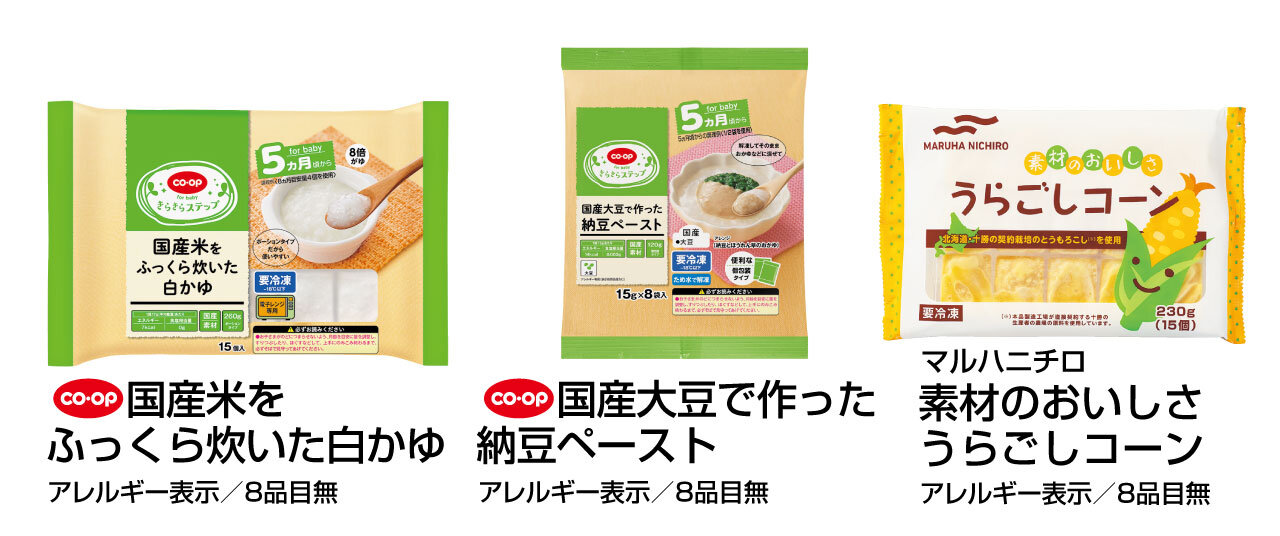 1. うらごしコーン、白かゆはそれぞれパッケージの裏面通りにレンジで加熱しておく。納豆ペーストは解凍して白かゆと混ぜ合わせる。
