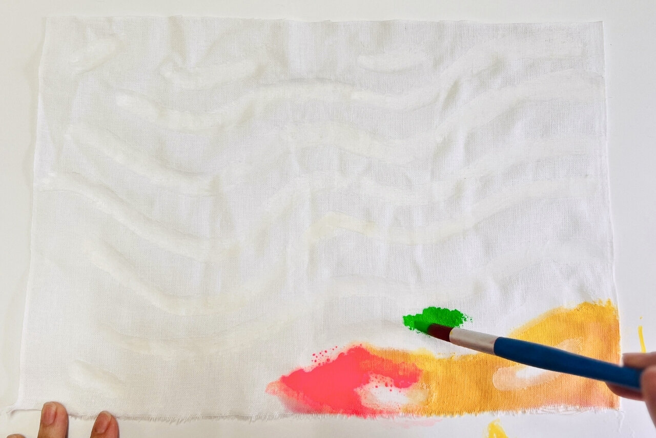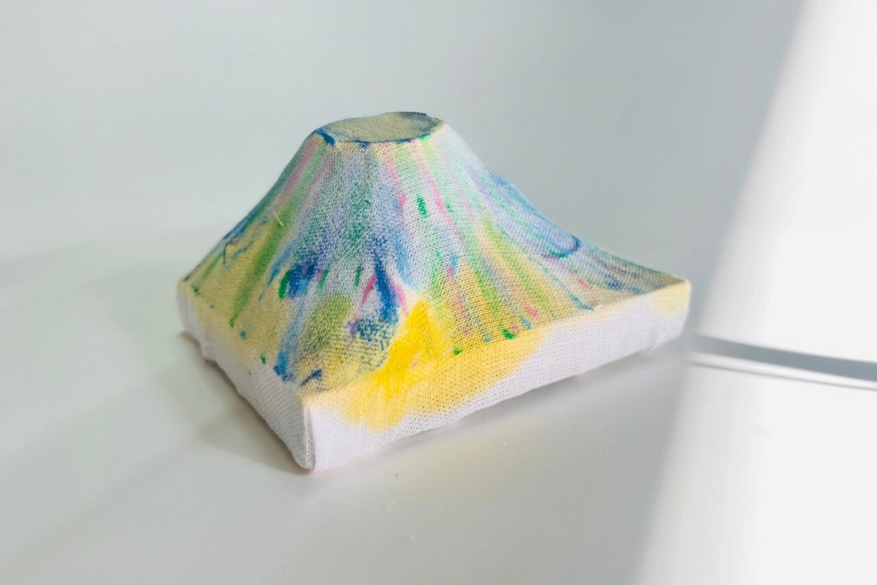 仕上げに、布に絵の具で色をつけたり、クレヨンをこすったりすると、中の形が少し見えて面白いです!