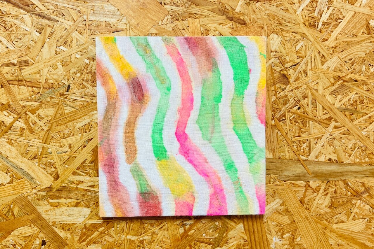 塗り終わりました! いろいろな色を使って波模様を描いてみましたよ。完全に乾くまで時間を置きましょう。