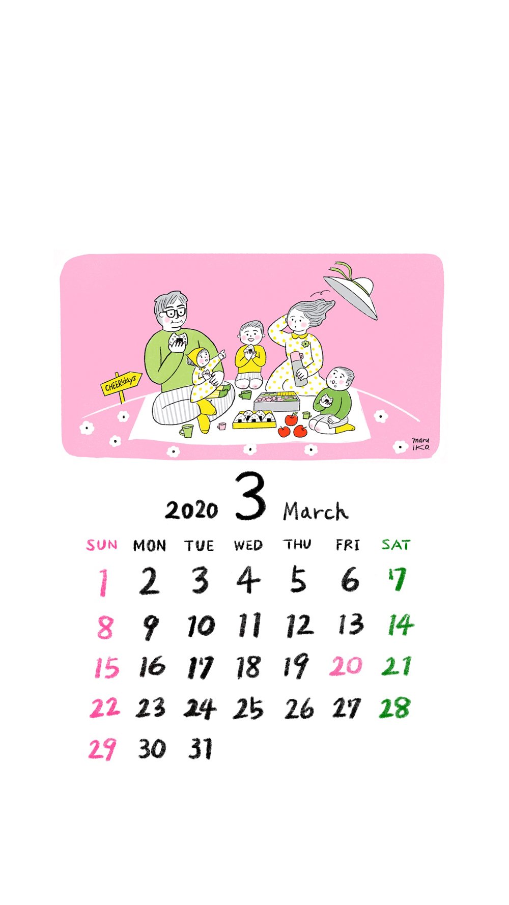 さて、3月カレンダーも、イラストレーター・maruikoさんに「CHEER!days」の