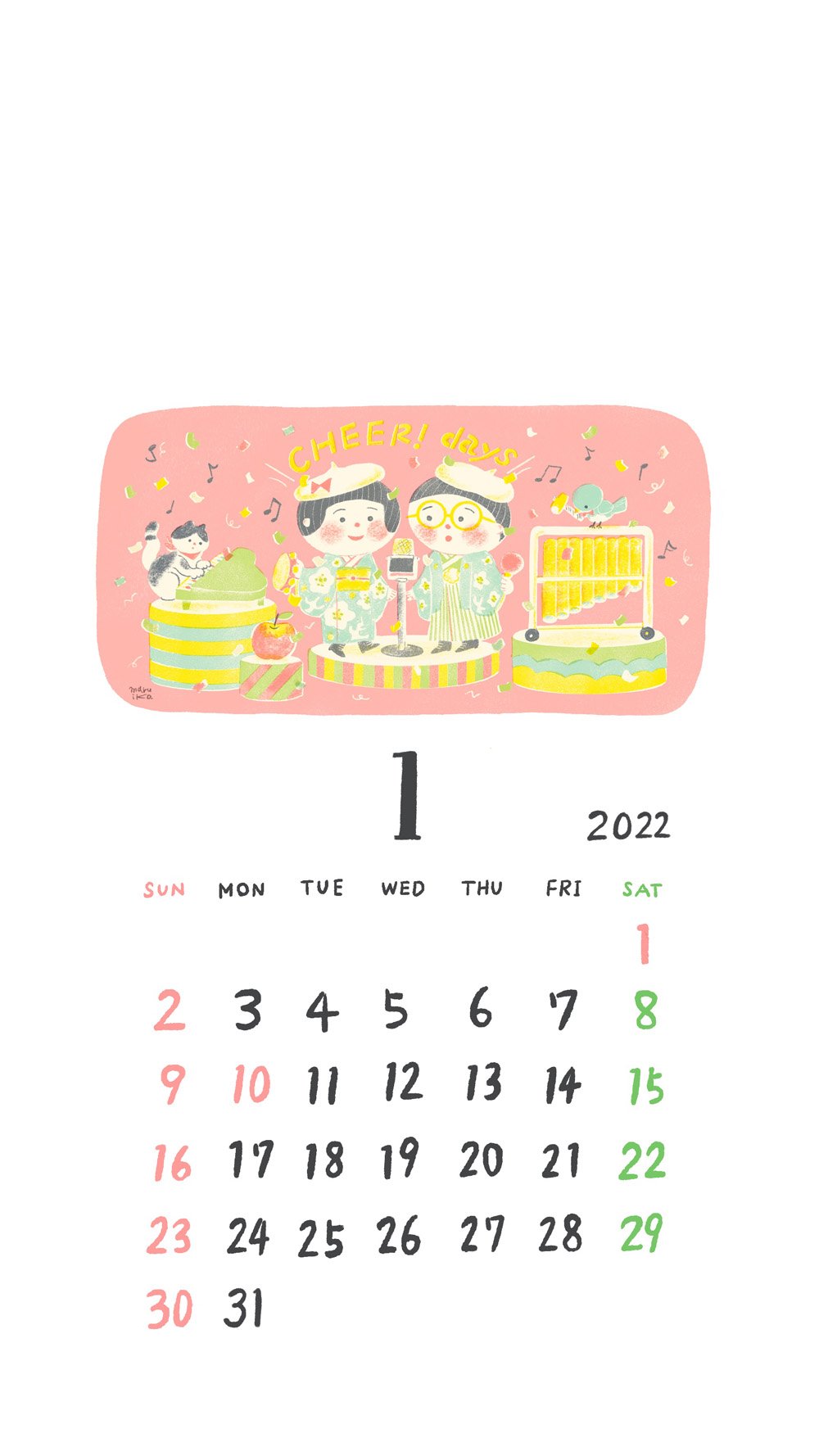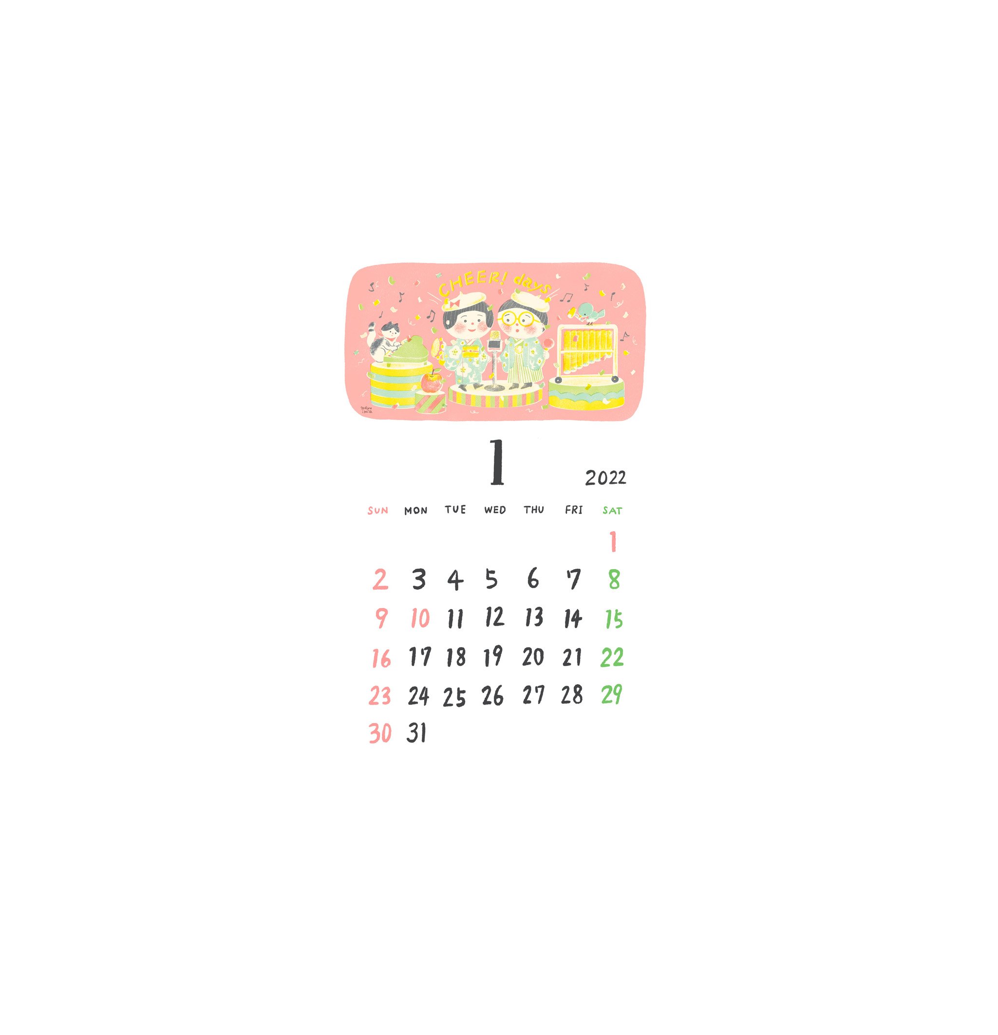 オリジナルカレンダーを描き下ろしてくださっているのは、福岡県嘉麻市在住のイラストレーター・maruiko(まるいこ)さん。今月のテーマは、1月19日ののど自慢の日にちなんで、チアちゃんとデイズくんが新春のど自慢大会を開催。ぴーちゃんはいくつ鐘をたたくのかな?